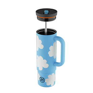 Straw Cup 800 ml. er den termiske, lette termokop i rustfrit stål. Det raffinerede og originale design gør den til den perfekte termokop at tage med på farten, uanset om du skal på kontoret eller i fitnesscenteret. De forskellige farver og det kompakte design tilbyder smukke løsninger til alle slags personligheder, der kombinerer æstetik med praktisk. Straw Cup er en 100% isoleret og vaskbar termokop. Du skal ikke bekymre dig om at miste en eneste dråbe af din yndlingsdrik. Denne termokop er skabt til at holde i lang tid, og det er derfor, den repræsenterer et godt alternativ til en plastflaske. Den er meget nem at bruge og den store åbning gør den super nem at gøre ren. Låget med sugerør gør det nemt at drikke oprejst, uanset om du går eller kører bil. Bunden af Straw Cup er designet til at passe til de fleste bilers kopholdere. Koppen kan holde kold i timevis, tæt og lækagesikker. Tilføj flere funktioner til din flaske med mange forskellige låg og diverse 24Bottles tilbehør. Vægt: 495 g Base diameter: 7,3 cm Mund: 8 cm Højde: 23,5 cm Materiale: 18/8 fødevaregodkendt rustfrit stål Hermetisk forsegling: Silikone 100% sikker: BPA-fri, BPS-fri, PES-fri, PFAS-fri og phthalat-fri Pleje og vedligeholdelse. Det er nemt at rengøre dine 24Bottles-produkter. Vi anbefaler altid vask i hånden ved at skylle dem med varmt vand efter hver brug, især hvis de bruges til at opbevare en anden væske end vand. Vi foreslår også regelmæssig vask: god vedligeholdelse af dine 24Bottles vil sikre, at du kan bruge dit produkt i mange år. Du skal blot bruge varmt vand og neutral sæbe, eller en blanding af varmt vand og eddike eller en teskefuld bagepulver til et mere naturligt alternativ, faktisk, når de bruges separat, er de en fremragende rengøringsløsning og absolut mere naturlig end opvaskemiddel. Når den er vasket, skal du altid lade flasken tørre på hovedet og uden låg.