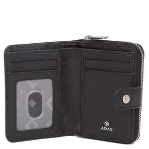 Aisa pung i Cormorano skind fra Adax. Aisa er en lille og fix damepung. Den er opdelt med et lynlåsrum hvor der er plads til mønter, kvitteringer, sedler mv. Der er yderligere kortlommer til 3 kort samt en klar fotolomme til fx dit kørekort. Der er også et stort seddelrum. Pungen er RFID-beskyttet. Pungen lukkes med en regulerbar trykknap.