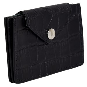 Selena kreditkort holder i Teramo eco læder fra Adax. Lille praktisk kortholder i croco præget læder, som har 3 åbne lommer med plads til både kort, kvitteringer mv. Kortholderen lukkes med en lille flap med en tryklås og er foret med det smukkeste grønne Adax logo for.