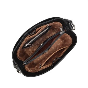 Lydia skuldertaske i Recycled PU fra serien Hello I'm Vegan fra Adax. Her får du en taske med både kort og lang aftagelig rem. Den lange rem har et smukt ternet mønster, den korte rem er i samme farve som tasken. Tasken har 3 rum hvor det miderste lukkes med lynlås, der er vedhæftet en aftagelig nøglering til lynlåsen. De to andre rum lukkes med magnetlukninger. I det ene åbne rum er der en lynlåslomme i den ene side og i det andet er der en åben lomme og en lynlåslomme. Der medfølger en kortholder med plads til 6 kort og seddellomme med lynlås.