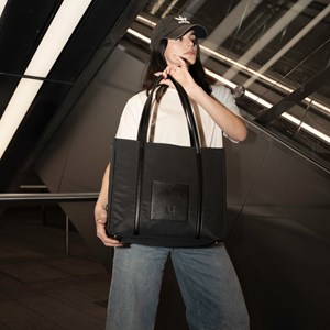 Hornbæk Totebag er en skøn taske til mange formål, udført i genanvendt kvalitetsnylon fra danske Again. Tasken lukkes med lynlås foroven, og har et stort rum med to smålommer og en lynlåslomme. Derudover er der en åben lomme foran og en lynlåslomme bagpå, samt metal knapper i bunden, så tasken har støtte når den står.
