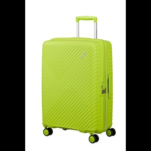 Diablast kuffert med indvendigt krydsbånd og skillerum med lynlås og lomme, indvendigt stof er lavet af 100% genbrugsplast, Dobbelte hjul , TSA lås, mulighed for udvidelse, rumindhold 81/91 liter, vægt 3,5 kg, 3 års Garanti.