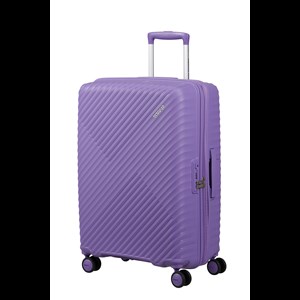 Diablast kuffert med indvendigt krydsbånd og skillerum med lynlås og lomme, indvendigt stof er lavet af 100% genbrugsplast, Dobbelte hjul , TSA lås, mulighed for udvidelse, rumindhold 81/91 liter, vægt 3,5 kg, 3 års Garanti.