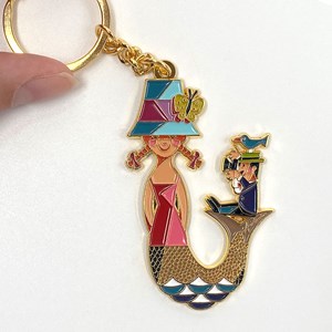 Vores nøgleringe er lavet med stor respekt for de originale illustrationer, som de afbilleder; alle tænkelige skygger og streger er blevet fremhævet. De er lavet af zink og emalje og måler cirka 4,5×6,5 cm uden kæde og ring.