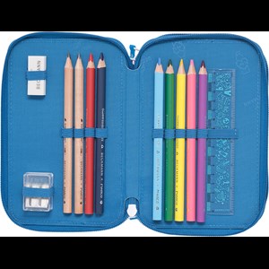 Penalhuset er fuldt af overraskelser, og indeholder selvfølgelig alt du har brug for til skolen og lektierne. Indholdet er fra kvalitetsleverandøren Lyra. Blyanter og farveblyanter er lavet af PEFC/FSC-certificeret træ. Indhold: 2x blyanter i jumbo-størrelse. 7x farveblyanter i jumbo-størrelse. 13x farveblyanter i normal størrelse. 1x viskelæder. 1x lineal. 1x blyantspidser til jumbo og normal størrelse. 1x skema. 1x notesbog.