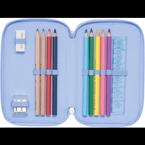 Penalhuset er fuldt af overraskelser, og indeholder selvfølgelig alt du har brug for til skolen og lektierne. Indholdet er fra kvalitetsleverandøren Lyra. Blyanter og farveblyanter er lavet af PEFC/FSC-certificeret træ. Indhold: 2x blyanter i jumbo-størrelse. 7x farveblyanter i jumbo-størrelse. 13x farveblyanter i normal størrelse. 1x viskelæder. 1x lineal. 1x blyantspidser til jumbo og normal størrelse. 1x skema. 1x notesbog.