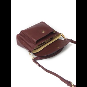 Flot crossbody taske i blødt vegetabilsk gravet læder. Indvendigt har tasken har et rum med en inderlomme med lynlåslukning samt en forlomme, som lukkes med en skjult magnet knap. Tasken kommer med to aftaglige skindremme, en lang rem som er justerbar og en kortere håndledsrem.
