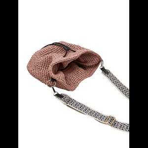 Sød lille strandtaske i flet. Tasken lukkes med en lille sort snor der bliver strammet. Har tilhørende hank med Becksöndergaard logo.