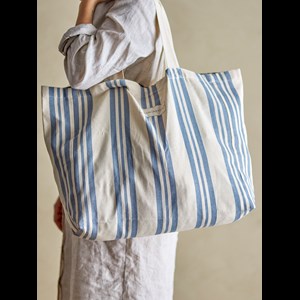 Trina Indkøbsposen fra Bloomingville er med sin store størrelse og hyggelige design din nye yndlingstaske til shopping og stranden. Den bløde taske har en lomme på indersiden til din telefon. Tasken er lavet af bomuld i en lys naturfarve med striber i en smuk blå farve.