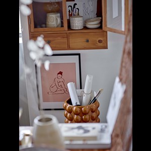 Deia urtepotten fra Bloomingville er en smuk urtepotte lavet af stentøj. Urtepotten viser originale orange bobler på ydersiden og er en stor urtepotte som vil lyse op i ethvert rum