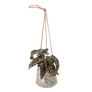Hængende blomsterpotte i en smuk grøn lak med læderstropper. Skjuleren er ideel til at have hængende i stuen med en flot grøn plante for at skabe noget liv og hygge.