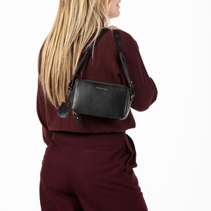 Parisian Paige Crossbody Box kommer fra en kollektion kendetegnet ved dets smidige læder, slanke design og stilrene hardware. Denne kollektion er også lavet af VT -læder, hvilket betyder, at der kun bruges naturlig tanning til at farve læderet. Tasken har to rum, der begge lukkes med lynlås. Det bagerste rum har lynlås, der fungerer som en skillevæg. Skulderremmen er aftagelig og justerbar.