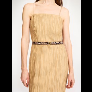 Ouma bæltet i læder, som er designet med et poleret gyldent spænde, sidder komfortabelt i taljen. Brug det i bæltestropperne på dine favoritbukser eller om taljen over en kjole eller blazer.
