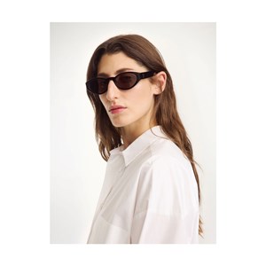 Til solrige dage året rundt – Myla-solbrillerne fuldender ethvert look. Fremstillet af skinnende acetat, har de en slank oval ramme med brede arme og reflekterende linser med UV-beskyttelse.