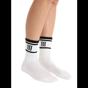 Tilføj et sporty udtryk til din hverdagsgarderobe med Leilana strømperne. Ribdesignet, som er detaljeret med By Malene Birgers monogram, er lige dele cool og komfortable. 80% bomuld, 17% polyester, 3% elastan.