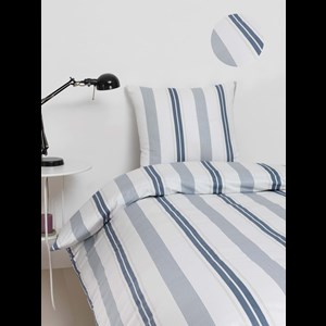 Simone sengetøj fra bySKAGEN i str. 140x220 cm. inklusiv pudebetræk i str. 60x63 cm. Skønt sengetøj i nostalgisk smalstribet design med blå nuancher.Sengetøjet er vævet i 100% bomuld, og super soft behandlet - så et blødere sæt sengetøj skal man lede længe efter. Det er samtidig Easy Care- og antipeelingbehandlet, som sikrer at det krøller minimalt. Alt vores sengetøj er selvfølgelig Öko-tex mærket, som er din tryghed for, at produktionen bliver kontrolleret og lever op til internationale krav, uden brug af sundhedsskadelige stoffer. Både pude- og dynebetræk er med lynlås. Vask: 60°C. Tørretumbling: ved middel temperatur. Strygning: ved middel temperatur. Krymp: 3-5%. Øko-tex certificeret. Husk at vaske seperat første gang og ved 60°C for at binde farverne.