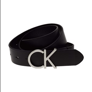Smart og elegant bælte fra Calvin Klein med sølvfarvet CK monogram spænde. Bæltet er fremstillet af 100% læder. Bæltet kan bruges til enhver lejlighed og pifter ethvert par bukser op. Bæltelængden kan let tilpasses.