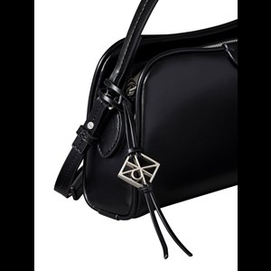 Tidløs sort håndtaske fra Calvin Klein med elegante emblem-detaljer. Det klassiske, stilrene og alsidige design passer til de fleste outfits og tasken kan også bruges som skuldertaske eller crossbody til både hverdag og fest med plads til pung, telefon, nøgler og lignende. Et sikkert valg til enhver garderobe.