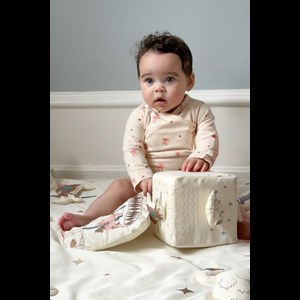 Blød og sjov Aktivitetsterning inspireret af vores smukke prints. Hver side af aktivitetsterningen byder på multi-sensoriske legemuligheder, sjove knitrende teksturer, pivelyd, sløjfer, spejl og en lille klokke, der stimulerer babyens nysgerrighed og fantasi. Den perfekte gave til nyfødte og baby shower.
