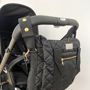 Vores populære pusletaske med elegant quiltning samt vand- og smudsafvisende coating både indvendigt og udvendigt for ekstra holdbarhed. Tasken har to kraftige hanke, en længere justerbar skulderrem og to små stropper, så du nemt kan fastgøre den til styret af barnevognen eller klapvognen. Pusletasken er designet med gennemtænkte detaljer som elegante YKK lynlåse i messing, praktiske lommer med og uden lynlås både indvendigt og udvendigt, et rum til sutteflasken og et fint foer. Med sit elegante og holdbare design er tasken lavet til at kunne bruges længe efter pusleårene til hverdagsformål og som weekendtaske.