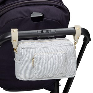 Funktionel og stilfuld quiltet pusletaske, der også fungerer som en crossbody taske. Fastgør den lille pusletaske med de særlige stropper til din klapvogn, og hav dine daglige ting lige ved hånden. Pusletasken holder styr på alt og er overraskende rummelig. Tasken er coated både indeni og udenpå, hvilket gør den holdbar, samt vand- og smudsafvisende. Den har messing YKK lynlåse, på ydersiden er der en praktisk lomme med lynlås, indeni tasken er der en isoleret lomme til flasken og praktiske elastiklommer til organisering.