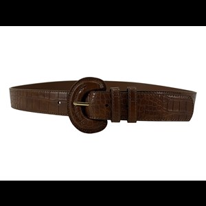 Carrie er et elegant og stilfuldt damebælte, der kombinerer et tidløst design med et moderne twist. Det brede bælte har en smuk croco-præget struktur og en markant rund spænde, som gør det til et iøjnefaldende accessory i garderoben. Med en bredde på 3,5 cm er bæltet både praktisk og dekorativt – perfekt til at fremhæve taljen over en kjole, en skjorte eller til at give et par jeans et ekstra touch af stil.