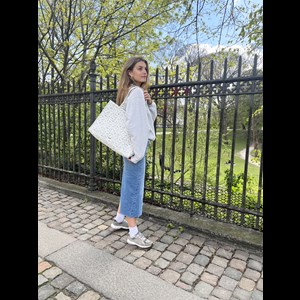 Shopper fra Conme i flot blomstret print med invendig lynlåslomme.