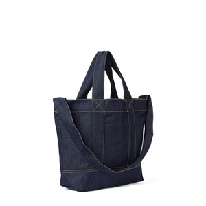 En mindre crossbody taske i mørkeblå denim med et afslappet, men funktionelt udtryk. Tasken har både håndtag og en justerbar rem, så den kan bæres på flere måder. Indvendigt er der en åben lomme til dine småting – ideel til hverdagsbrug.
