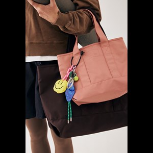 Denne mini tote bag er fremstillet i samme materiale og farve overalt, hvilket skaber et ensartet og roligt udtryk. Tasken lukkes med en trykknap, som gør det nemt at få adgang til dine ting, samtidig med at indholdet holdes sikkert. Indvendigt finder du en lynlåslomme til opbevaring af små nødvendigheder som nøgler eller mobiltelefon. Et funktionelt og stilfuldt valg til dage, hvor du kun har brug for det vigtigste med dig.