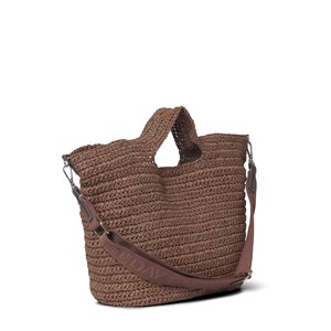 Denne elegante og lette sommertaske er hæklet i stråmateriale og har en fast bund, der sikrer stabilitet. Tasken er foret med hørmateriale og har en praktisk indvendig lynlåslomme til organisering af småting. Den lukkes med en trykknap og kan bæres som håndtaske eller som crossbody ved hjælp af den aftagelige og justerbare strop med logo. Detaljer i imiteret læder, hvor stroppen fastgøres, giver tasken et eksklusivt udtryk.