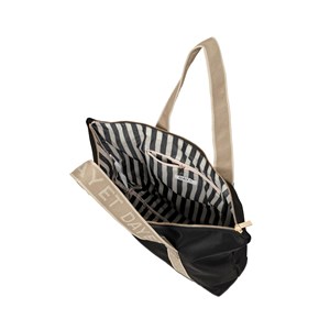Denne Day RE-LB Summer Bag M har et flot design med logo på stropperne. Tasken er udformet i 100% genanvendt materiale i hovedstoffet, og i det rummelige hovedrum er der plads til 13" computer. Indeni har tasken en lynlås lomme, hvor du kan opbevare dine mindre sager. Tasken har lange behagelige stropper og guld detaljer, som giver den et eksklusivt look. Den er også designet med et stribet foer.