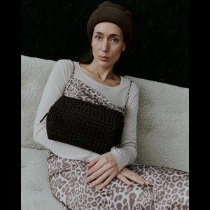 Toilettaske håndflettet i blød, dobbeltsidet neopren med struktur og en fast, rummelig form. De skjulte syninger giver tasken et blødt, afrundet look, og det indvendige rum samt lynlåslukningen gør den funktionel og nem at bruge på farten eller hjemme.