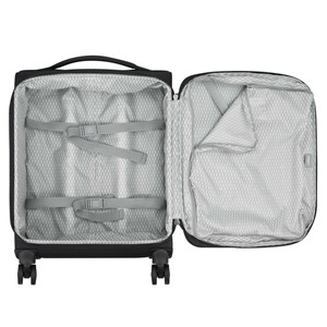 Lækker blød ekspanderbar kabinekuffert med dobbelte spinnerhjul, der sikrer en glidende og støjsvag kørsel. Kufferten er udstyret med en frontlomme med lynlås og integreret TSA-kombinationslås. TSA-låsen er påkrævet ved indrejse til USA. Kufferten har forstærkede hjørner og ekspansion, der giver yderligere plads i kufferten ved behov. Trækhåndtaget har flere trin og et ultra komfortabelt tophåndtag. Indvendigt er kufferten foret med et flot foer og har stropper i hovedrummet. I låget er der ligeledes et lynlåsaflukket rum. Der ydes 5 års garanti på denne kuffert.