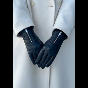 Cool handske i blød og lækker lammeskind. Handsken har et cool og råt look, da den er dekoreret med en lynlås detaljer på fronten. Skindhandsken har touch funktion i pegefinger og tommelfinger.Foret i handsker matcher skindhandskens farve. Fóer 70% uld/ 30% akryl.