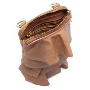 Mobiltaske i flot og lækker kalveskind. Tasken har et super trendy og smukt look, da den er dekoreret med fine flæser på fronten. Den lukkes i toppen med lynlås. Indvendigt: Det ene rum kan indeholde en mobiltelefon / smartphone samt fire kreditkort. Det andet rum kan bruges til fx. nøgler, lipgloss eller andet. Lang aftagelig og justerbar crossbody rem medfølger.