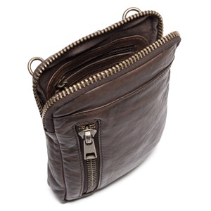 Rå og cool mobil taske i en lækker og blød læderkvalitet. Tasken har et enkelt look, men med et råt twist, da den er dekoreret med frontlomme med chunky lynlås. Den er opdelt i 2 sektioner, som begge lukkes i toppen med lynlås. Indvendigt: Mobiltasken har to primære rum med plads til din smartphone, samt en lille lynlås lomme til småting. Lang aftagelig og justerbar crossbody skindrem medfølger.