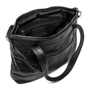 Stor rummelig taske i vasket og blød skindkvalitet. Tasken har et lækkert og vintage lignende look med en lynlås lomme på fronten. Tasken har et primært rum med god plads, en mindre lynlås lomme samt 2 små åbne mobillommer. Der medfølger lang aftagelig og justerbar crossbody rem.