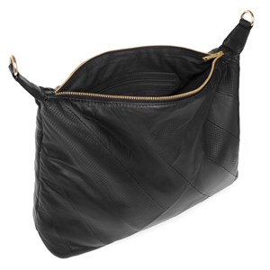 Medium skuldertaske i blød og lækker skindkvalitet. Tasken har et smukt og feminint look, da den er dekoreret med et feminint kryds mønster på fronten. Indvendigt: Skuldertasken har et primært rum med god plads til diverse hverdagsting. Derudover har den en lille lynlås lomme til fx. nøgler eller andre småting. Både lang justerbar og aftagelig crossbody rem og kort aftagelig skulderrem medfølger.
