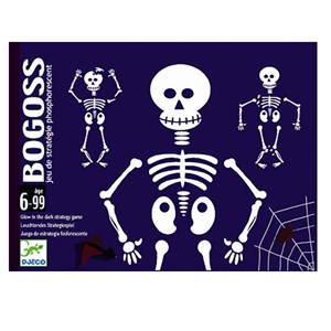 Kortspil, Bogoss fra Djeco. Kortspil med selvlysende kort. Her gælder det om at samle skeletter, som består af forskellige dele. Fra 6 år