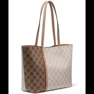 Elegant og stilfuld shopper fra DKNY med det ikoniske monogram. Tasken har et rummeligt hovedrum med lynlåslukning og en praktisk lille lynlåslomme til dine mindre ejendele. De fine brune stropper og bund skaber en sofistikeret kontrast, mens den iøjnefaldende kædedetalje tilføjer et strejf af luksus. Perfekt til både arbejde og fritid – en tidløs taske, der kombinerer funktionalitet med elegance.