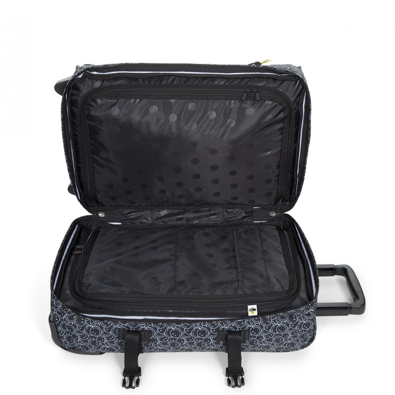 Tranverz S trolley fra Eastpak er en blød rejsetaske med to hjul. Trolleyen åbnes på midten i to lige store dele og pakkes som en kuffert. Derudover der er også en stor udvendig lynlåslomme. Tasken har to regulerbare stropper i hver side samt teleskophåndtag. Tasken har en TSA-lås for sikker beskyttelse af din baggage.