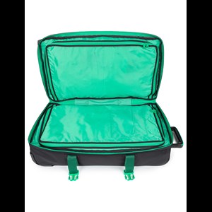 Tranverz M trolley fra Eastpak er en blød rejsetaske med to hjul. Trolleyen åbnes på midten i to lige store dele og pakkes som en kuffert. Derudover der er også en stor udvendig lynlåslomme. Tasken har to regulerbare stropper i hver side samt teleskophåndtag. Tasken har TSA-lås for sikker fastholdelse af din baggage.