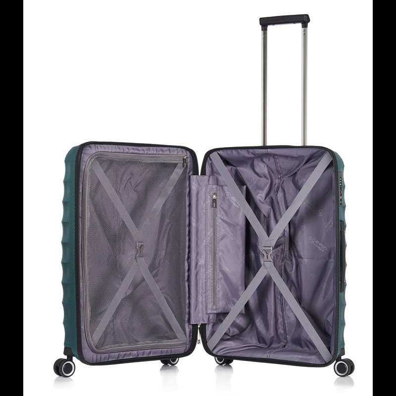 JetStream fra Epic.En virkelig fin trolley til prisen! En af markedets letteste PP-trolleyer. Nobelt og smukt ydre og en virkelig fin indretning indeni. Fire lydløse dobbelthjul, TSA-lås og et rigtigt godt trolleysystem - lige til at gå til. 5 års garanti.