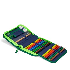 Ergobag penalhus med indhold - 22 dele. Indeholder farveblyanter, blyant, linial og viskelæder fra Osiris serien af det tyske mærke LYRA. Til ergobag penalhus bruges derfor tekstiler, der er fremstillet af 100 % genbrugte PET-flasker.