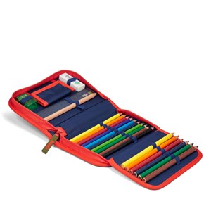 Ergobag penalhus med indhold - 22 dele. Indeholder farveblyanter, blyant, linial og viskelæder fra Osiris serien af det tyske mærke LYRA. Til ergobag penalhus bruges derfor tekstiler, der er fremstillet af 100 % genbrugte PET-flasker.