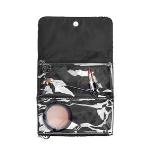 Kosmetiktasken har 2 store rum, der lukkes med lynlås. Rummene er gennemsigtige og giver et godt overblik over indholdet af tasken. Kosmetiktasken lukkes med magnetlukning, og kan også bruges som en clutch til en aften i byen.