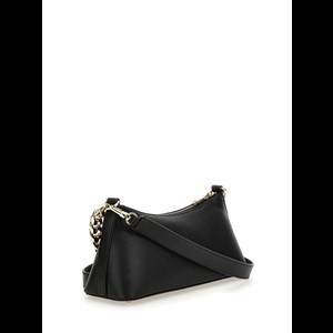 Smart lille Guess crossbody taske i PU materiale med justerbar skulderrem så tasken både bruges som skuldertaske og crossbody. Tasken er pyntet med en tyk kæde. Indvendigt er tasken indrettet med et stort rum samt en lynlås lomme og to små lommer i siden, tasken lukkes med flap med magnet.