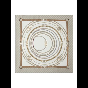 Kvadratisk tørklæde med elegant mønster og glansfuld overflade. Den bløde kvalitet gør det behageligt at bære, og størrelsen giver mange muligheder – både om halsen, i håret eller som pynt på tasken