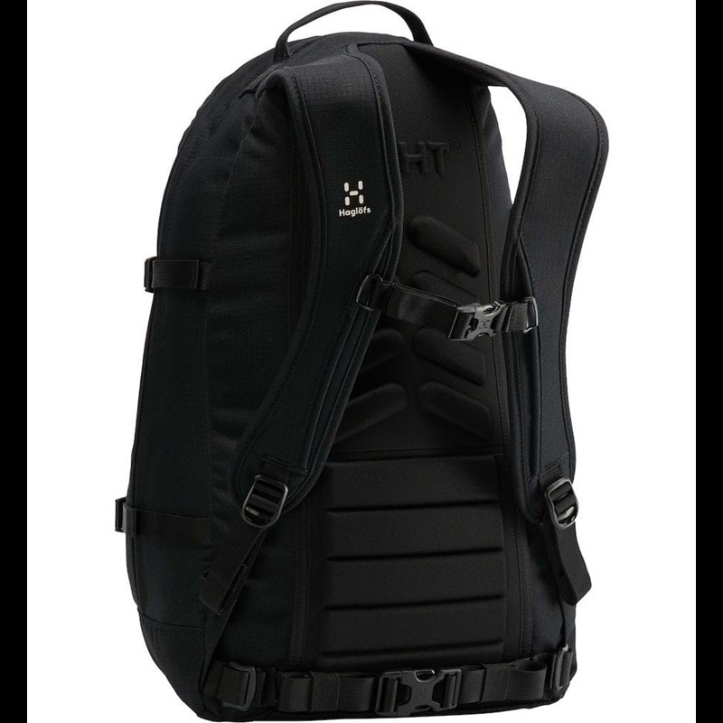 Tight Large rygsæk fra Haglöfs. Rygsækken er designet til at følge kroppens bevægelser og sidder tæt mod ryggen. Den pæreformede forside giver et lavt tyngdepunkt. Rygsækken har polstrende skulderstroppe, justerbar brystrem, aftagelig taljestrop og livrem. Derudover har rygsækken en indvendig -og udvendig lomme.