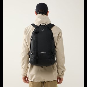 Tight Large rygsæk fra Haglöfs. Rygsækken er designet til at følge kroppens bevægelser og sidder tæt mod ryggen. Den pæreformede forside giver et lavt tyngdepunkt. Rygsækken har polstrende skulderstroppe, justerbar brystrem, aftagelig taljestrop og livrem. Derudover har rygsækken en indvendig -og udvendig lomme.